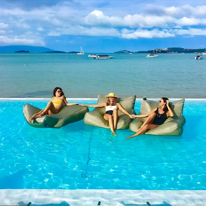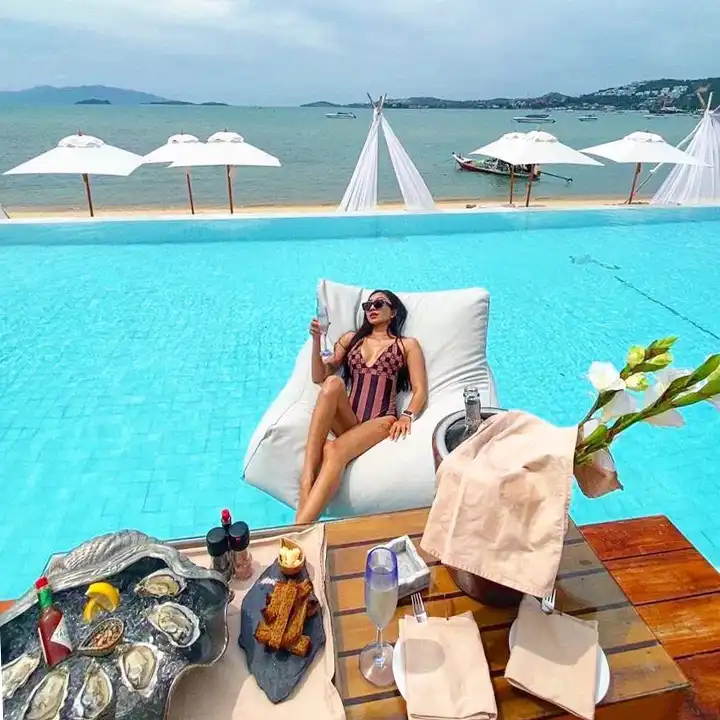 Big Bed or Sofa: THB 8,000 minimum spend per bed, suitable for 2-4 people. Located by the pool, offering a bit of extra luxury and comfort.